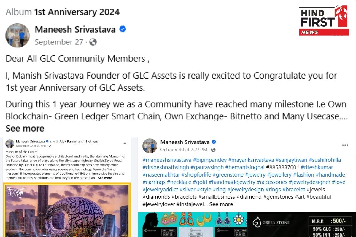 इसी साल 27 सितंबर को मनीष ने अपने फेसबुक पर GLC को लेकर एक पोस्ट भी किया था-जिसमें लिखा था प्रिय GLC कम्युनिटी के सभी सदस्यगण, मैं, मनीष श्रीवास्तव, GLC एसेट्स का फाउंडर, आपको GLC एसेट्स की पहली सालगिरह पर ढेर सारी बधाइयाँ देना चाहता हूँ। इस एक साल के सफर में हम सब मिलकर एक अच्छा काम कर रहे हैं और आने वाले सालों में हम और भी बेहतर करेंगे। हमारी कंपनी के आने वाले रोडमैप में और भी बड़ी योजनाएँ हैं।बता दें रूबी कॉइन के नाम पर हुए ठगी मामले की जांच यूपी STF पहले से कर रही है, जो अभी भी चल रही हैं। इस केस में अभी किसी को सजा नहीं मिली है, मामला कोर्ट में चल रहा है।