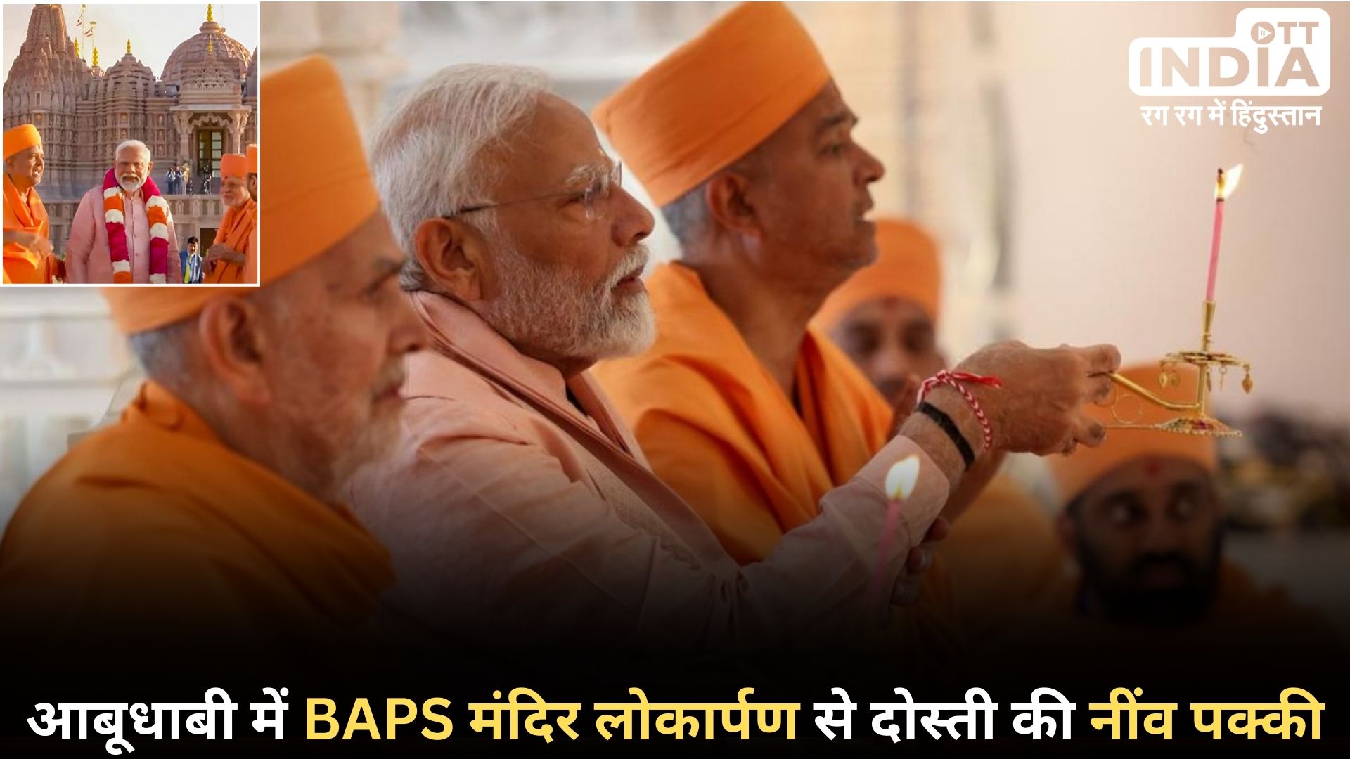मुझे विश्वास है कि आने वाले समय में बड़ी संख्या में श्रद्धालु यहां (ABU DHABI BAPS EVENT) आएंगे। इससे यूएई आने वाले लोगों की संख्या भी बढ़ेगी और दो लोगों का कनेक्शन भी बढ़ेगा। भारत और दुनिया भर में लाखों भारतीयों की ओर से, मैं राष्ट्रपति मोहम्मद बिन जायद अल नाहयान और यूएई सरकार के प्रति हार्दिक आभार व्यक्त करता हूं।पीएम मोदी ने कहा, ''यूएई के उपराष्ट्रपति ने भारतीय श्रमिकों के लिए अस्पताल के निर्माण के लिए दुबई में जमीन आवंटित करने की घोषणा की है।'' अबू धाबी में BAPS हिंदू मंदिर के उद्घाटन पर पीएम मोदी ने कहा, ''मैं मां भारती की पूजा करता हूं। भगवान ने मुझे जीत का समय दिया है, उसका हर पल माँ भारती के लिए है।” यह भी पढ़े: भारत और यूएई के बीच इन समझौतों पर हस्ताक्षर, डिजिटल भुगतान, निवेश और बिजली व्यापार…OTT INDIA खबरों से रखेगा अपडेट