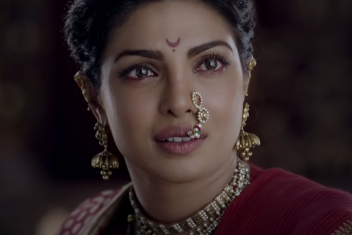 महाकाव्य ऐतिहासिक रोमांस बाजीराव मस्तानी में प्रियंका चोपड़ा ने मराठा योद्धा पेशवा बाजीराव प्रथम की पहली पत्नी काशीबाई की गरिमा और लचीलेपन को जीवंत किया।