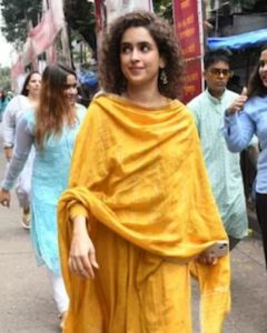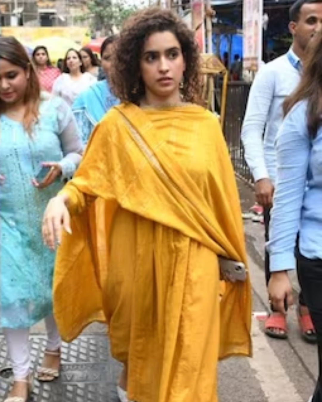 गणेश चतुर्थी समारोह के बीच भगवान के दर्शन करते समय Sanya Malhotra पीले कुर्ता सेट में radiant लग रही थीं। उन्होंने अपने प्राकृतिक कर्ल दिखाए और सफेद जूती और पीले झुमके के साथ पोशाक को जोड़कर अपने लुक को सरल रखा। लालबागचा राजा गणेश पूजा के लिए मशहूर हस्तियों के बीच एक लोकप्रिय स्थान है। हाल ही में Sanya के co-star Shah Rukh Khan भी अपने छोटे बेटे अबराम के साथ पंडाल में नजर आए।