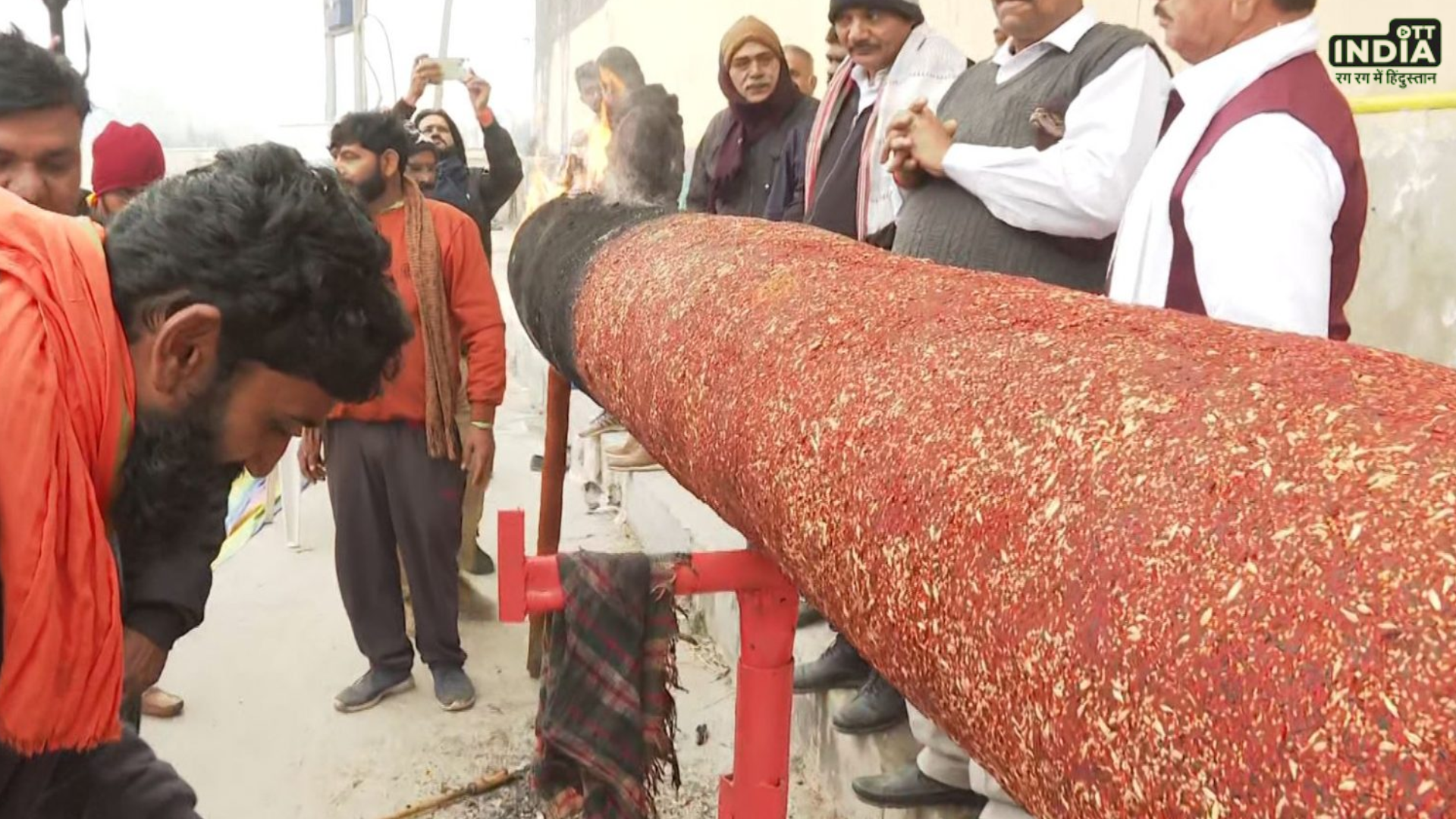 राजस्थान (डिजिटल डेस्क)। AGARBATTI: अयोध्या में रामलला के अनुष्ठान समारोह में (AGARBATTI) कुछ ही दिन ही शेष रह गए है। ऐसे में गुजरात के वडोदरा से आई 108 फीट ऊंची अगरबत्ती आज अयोध्या के अंतरराज्यीय बस स्टैंड पर जलाई गई। अगरबत्ती प्रज्ज्वलित नृत्य गोपाल दास महाराज ने की। इस अगरबत्ती को बनाने में लगभग 6 महीने का समय लगा। बता दें कि राम भक्त इस अगरबत्ती को लेकर 1 जनवरी 2024 को वडोदरा से निकले थे।
