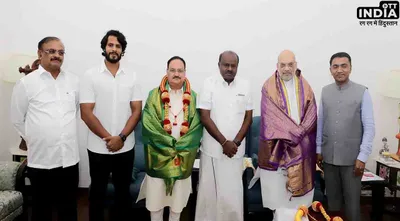 बता दें सोशल मीडिया पर अमित शाह और जेपी नड्डा के साथ एचडी कुमारस्वामी की फोटो जमकर शेयर की जा रही है। बीजेपी अध्यक्ष जगत प्रकाश नड्डा ने सोशल मीडिया के माध्यम से जानकारी देते हुए लिखा कि ''कर्नाटक के पूर्व मुख्यमंत्री और जेडीएस नेता एचडी कुमारस्वामी से गृह मंत्री अमित शाह की मौजदूगी में मुलाकात की। मुझे ये बताते हुए खुशी हो रही है कि जेडीएस ने एनडीए में शामिल होने का फैसला लिया है।''