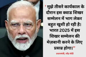 पीएम ने कहा, "मुझे तीसरे कार्यकाल के दौरान इस क्वाड शिखर सम्मेलन में भाग लेकर बहुत खुशी हो रही है। आपके नेतृत्व में 2021 का पहला शिखर सम्मेलन आयोजित हुआ था। उन्होंने कहा, "इतने कम समय में हमने हर दिशा में अभूतपूर्व तरीके से अपने सहयोग का विस्तार किया है। इसमें आपका बहुत महत्वपूर्ण योगदान रहा है। मैं क्वाड के प्रति आपकी प्रतिबद्धता और योगदान के लिए दिल से धन्यवाद करता हूं।" प्रधानमंत्री ने आगे कहा कहा कि भारत 2025 में इस शिखर सम्मेलन की मेज़बानी करने के लिए प्रसन्न होगा।