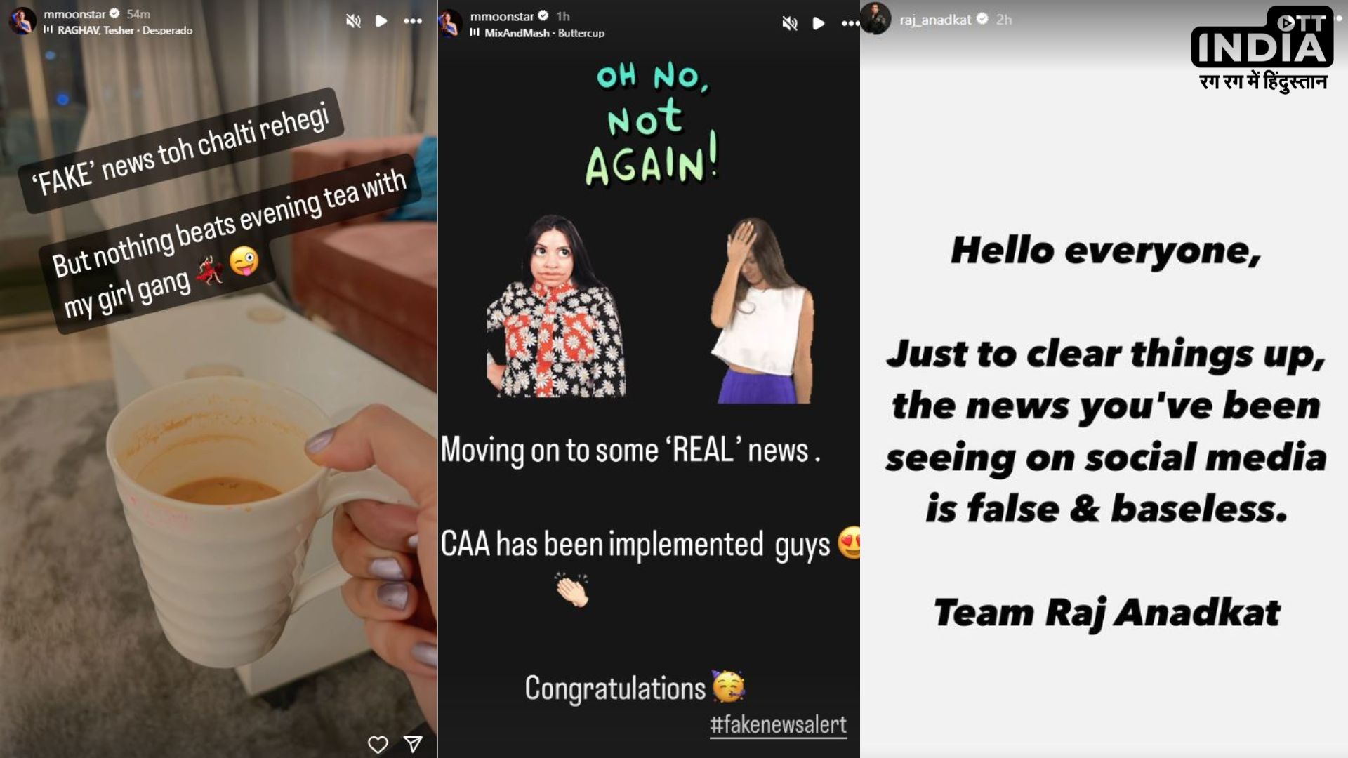 हाल ही में मुनमुन ने अपने एक इंटरव्यू में कहा है कि यह सारी खबर फेक और मजाकिया है। इन खबरों में जरा सी भी सच्चाई नहीं है। मुनमुन ने कहा कि सच कहूं तो मैं बार बार इन झूठी झूठी खबरों पर अपनी अटेंशन और एनर्जी नहीं लगाना चाहती। वहीं दूसरी तरफ तारक मेहता...शो के टप्पू उर्फ राज अनादकट ने अपने सोशल मीडिया अकाउंट पर एक स्टोरी शेयर करते हुए कहा कि सभी को नमस्कार, मैं बस कुछ चीजों को स्पष्ट करना चाहता हूं। जो खबरें आप सोशल मीडिया पर देख रहे है वह सभी झूठी और फर्जी है।...टीम राज अनादकट। काफी समय से उड़ रही है अफवाह