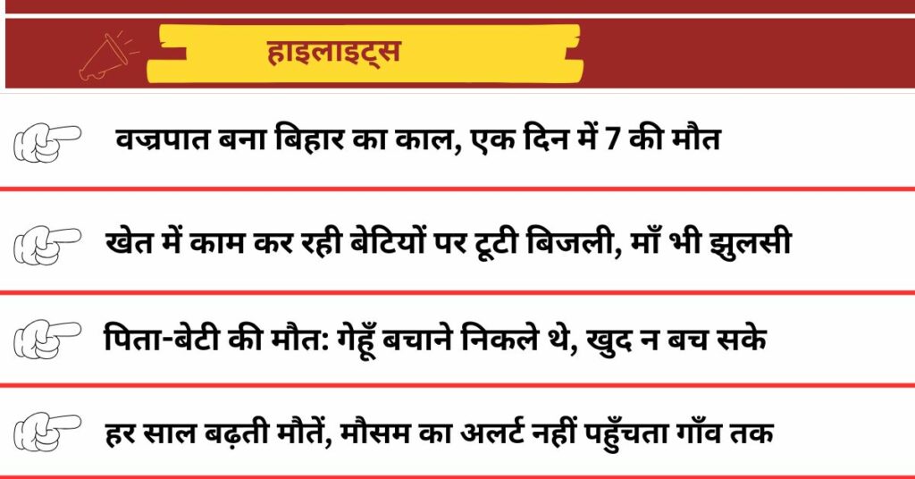 बिहार में वज्रपात का कहर: पिता-पुत्री समेत 7 की मौत, आखिर क्यों बन रही है बिजली काल?