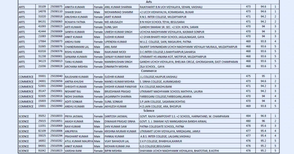BSEB 12th Toppers List 2025: प्रिया जयसवाल बनीं टॉपर, देखें बिहार बोर्ड 12वीं की पूरी टॉपर्स लिस्ट