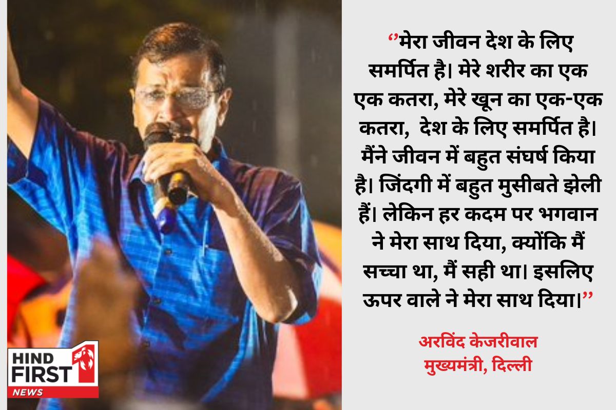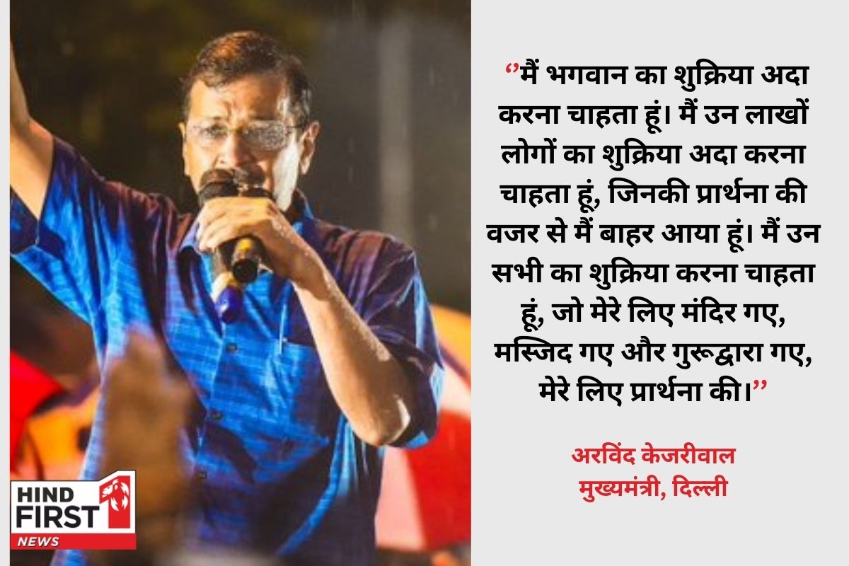 जेल से बाहर आते ही अरविंद केजरीवाल ने आप कार्यकर्ताओं को संबोधित किया। उन्होंने कहा कि सबसे पहले मैं भगवान का शुक्रिया अदा करना चाहता हूं। मैं उन लाखों लोगों का शुक्रिया अदा करना चाहता हूं, जिनकी प्रार्थना की वजर से मैं बाहर आया हूं। मैं उन सभी का शुक्रिया करना चाहता हूं, जो मेरे लिए मंदिर गए, मस्जिद गए और गुरूद्वारा गए, मेरे लिए प्रार्थना की।