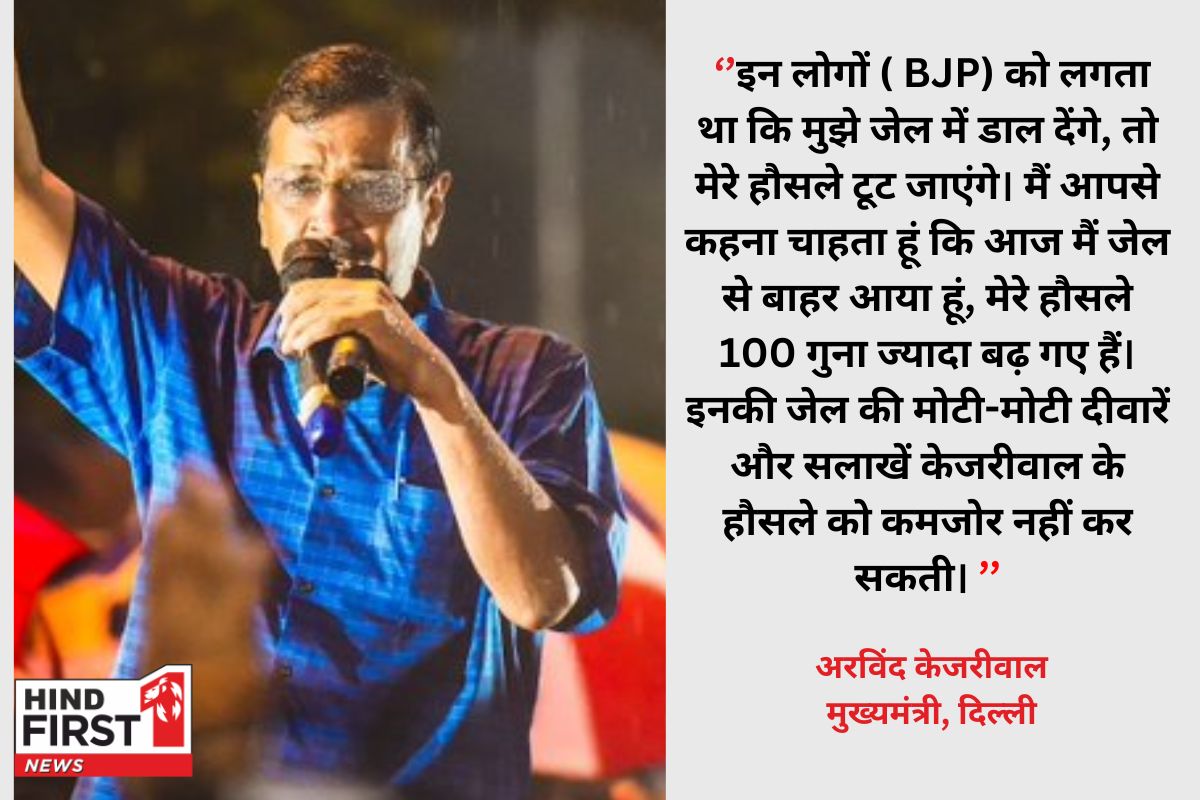 केजरीवाल ने बीजेपी पर हमला करते हुए कहा कि इन लोगों को लगता था कि मुझे जेल में डाल देंगे, तो मेरे हौसले टूट जाएंगे। मैं आपसे कहना चाहता हूं कि आज में जेल से बाहर आया हूं, मेरे हौसले 100 गुना ज्यादा बढ़ गए हैं। इनकी जेल की मोटी-मोटी दीवारे और सलाखें केजरीवाल के हौसले को कमजोर नहीं कर सकती।