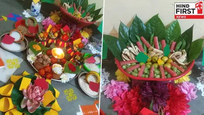 वेदी सजाएं: वेदी को सजाने के लिए ताजे फूल, रंगोली और आम के पत्तों का उपयोग करें। मंच पर साफ लाल या पीला कपड़ा बिछाएं।