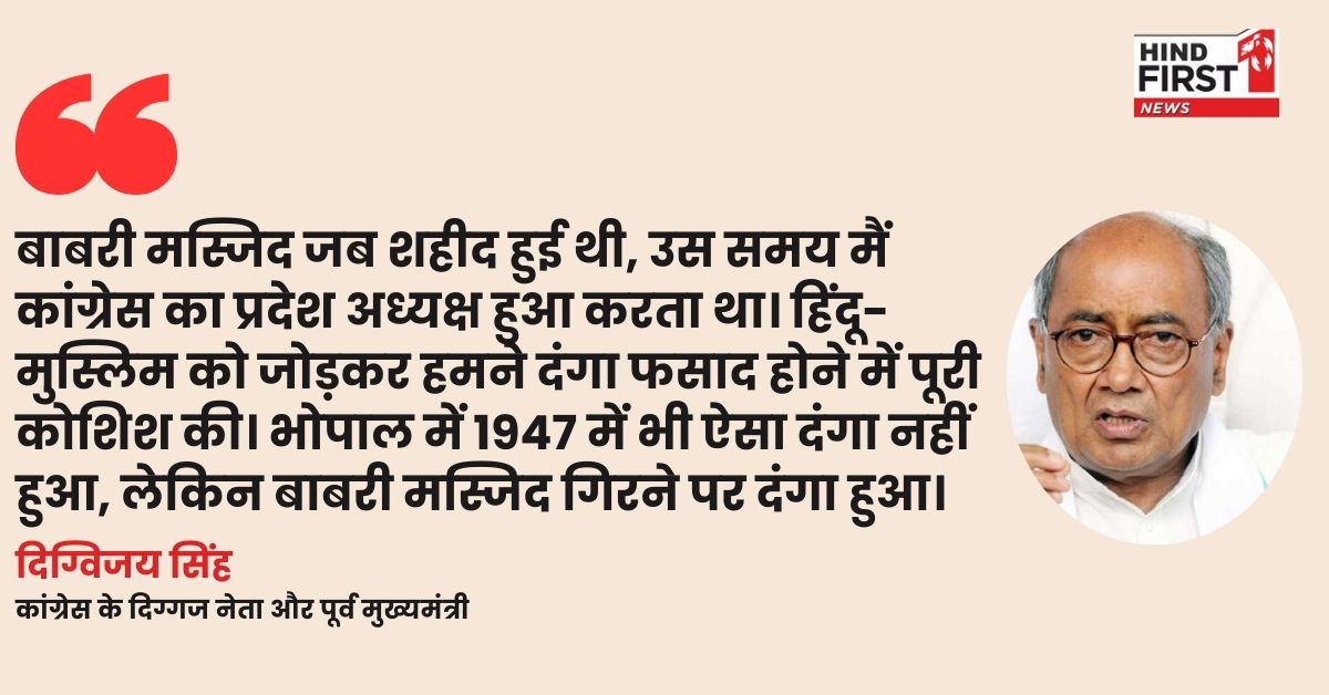 दरअसल 16 अप्रैल 2025 को शाजापुर के चौबदार वाडी में मुस्लिम समाज ने सद्भावना सम्मेलन आयोजित किया। मंच पर थे कांग्रेस के कद्दावर नेता और राज्यसभा सांसद दिग्विजय सिंह। BJP सरकार को घेरते हुए वह अपनी उपलब्धियाँ गिना रहे थे। 1992 के बाबरी मस्जिद विध्वंस का जिक्र आया, और दिग्विजय बोले: बता दें कि उनका मकसद शायद यह बताना था कि उन्होंने मध्य प्रदेश में सांप्रदायिक सौहार्द बनाए रखने की कोशिश की। लेकिन "दंगा फसाद होने में" जैसे शब्दों ने उनके बयान को उल्टा कर दिया। यह क्लिप तुरंत वायरल हो गई, और BJP ने इसे "कांग्रेस की सच्चाई" बताकर सियासी हथियार बना लिया।