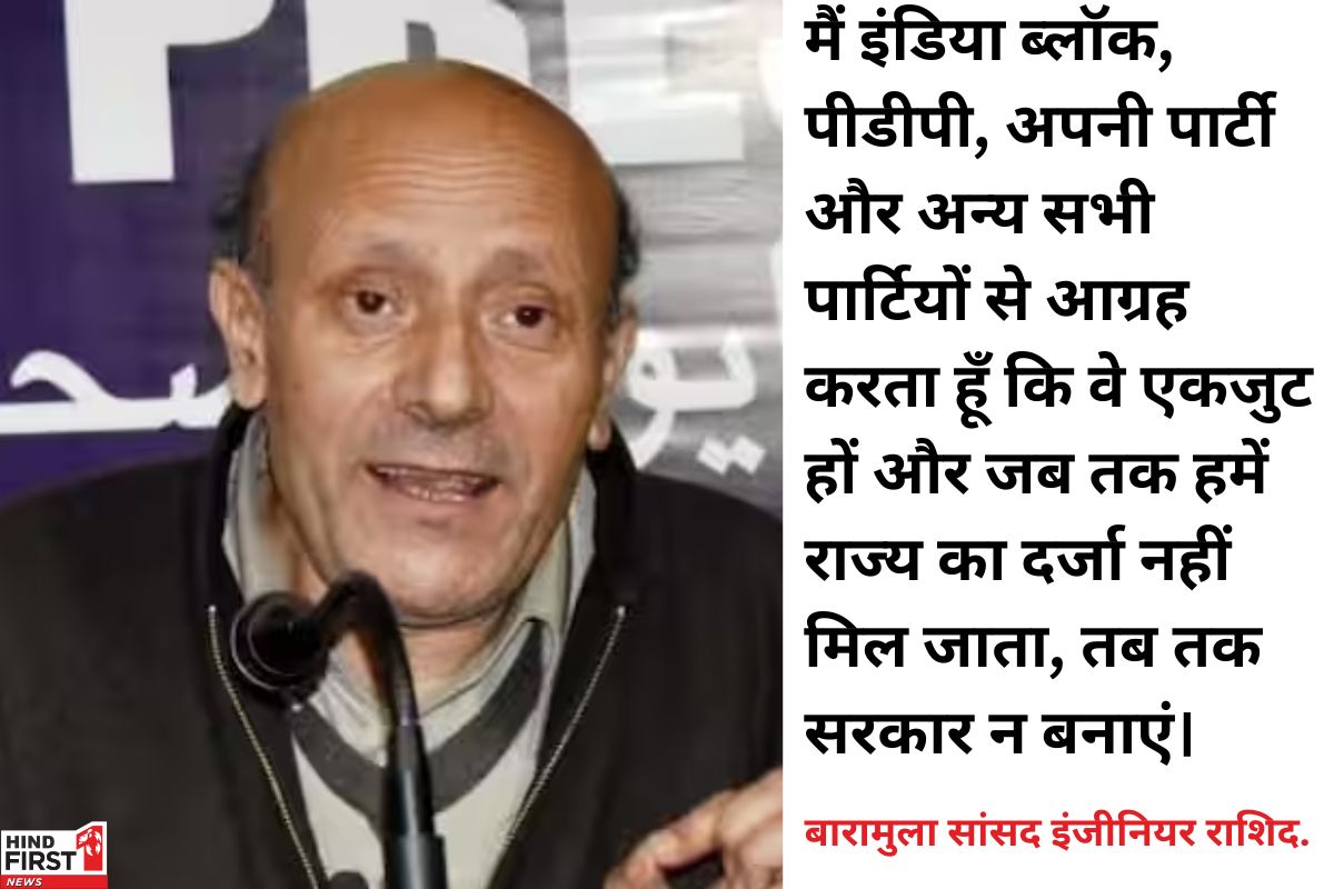 इंजीनियर रशीद ने कहा, "मैं इंडिया ब्लॉक, पीडीपी, अपनी पार्टी और अन्य सभी पार्टियों से आग्रह करता हूँ कि वे एकजुट हों और जब तक हमें राज्य का दर्जा नहीं मिल जाता, तब तक सरकार न बनाएं।"