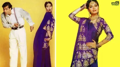 माधुरी दीक्षित की हीरोइन 'हम आपके हैं कौन' फिल्म का गाना 'दीदी तेरा देवर दीवाना' तो सबका ही पसंदीदा है। इस गाने में माधुरी दीक्षित ने पर्पल कलर की साड़ी पहनी थी। ये साड़ी सिल्क की थी, जिसके पल्ले पर जरी का काम था। साथ ही पल्ले से मैच करती हुई इसपर कढ़ाई का काम है, इस लुक में एक्ट्रेस ने साड़ी से मिलती हुई मैचिंग की चूड़ियां भी पहनी है। झुमके ने लुक पर चार चांद लगा दिए है, इस लुक में वह आज भी उतनी ही खूबसूरत लग रही है। इस लुक को रिक्रिएट करने के बाद सभी फैंस को माधुरी सेम-टू-सेम लग रही है। ये वीडियो सोशल मीडिया पर ऐसे जमकर वायरल हो रहा है।
