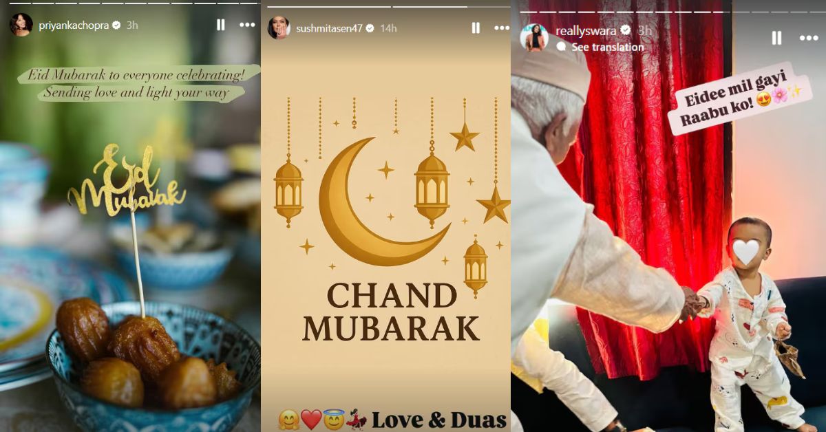 Eid-ul-fitar 2025: 31 मार्च 2025 को पूरे देशभर में ईद का जश्न मनाया जा रहा है। इस दिन हर आम-ओ-खास इस मुबारक मौके पर एक-दूसरे को बधाई दे रहा है। ऐसे में भला हमारे फिल्मी सितारे कैसे पीछे रह सकते हैं। तो प्रियंका चोपड़ा से लेकर सुष्मिता सेन तक ने हर किसी को ईद की मुबारकबाद दी है।