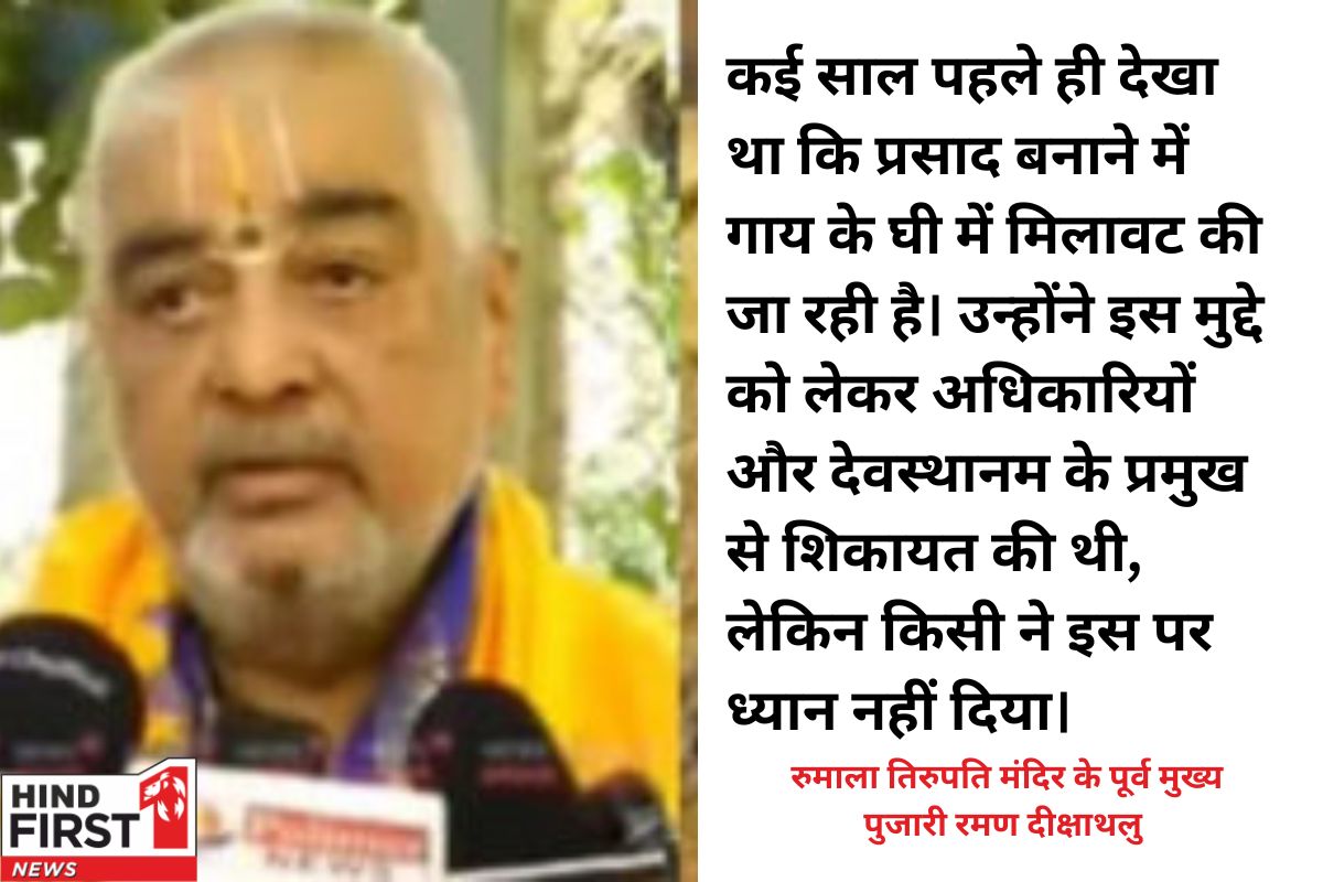 तिरुपति मंदिर के प्रसाद लड्डू को लेकर एक बड़ा विवाद सामने आया है। जब से यह जानकारी मिली कि लड्डू बनाने के लिए घी के बजाय जानवरों की चर्बी का इस्तेमाल किया जा रहा है, तब से पूरे देश में हंगामा मच गया है। इस बीच, तिरुमाला तिरुपति मंदिर के पूर्व मुख्य पुजारी रमण दीक्षाथलु ने इस मुद्दे पर गंभीर आरोप लगाए हैं।
