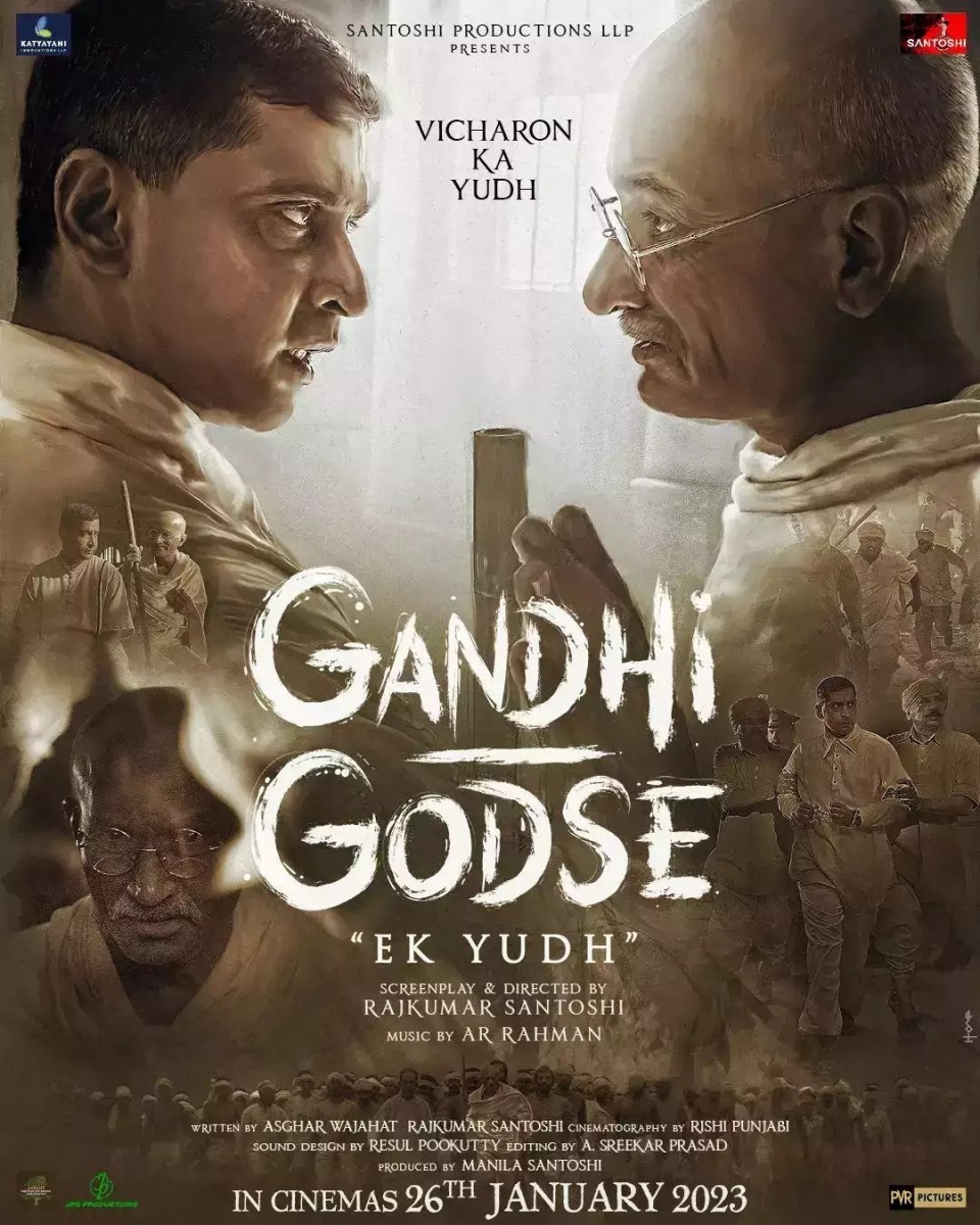 मशहूर फिल्म निर्देशक राजकुमार संतोषी की गांधी-गोडसे एक युद्ध का मोशन पोस्टर रिलीज हो गया है। गांधी-गोडसे एक युद्ध 9 साल के अंतराल के बाद राजकुमार संतोषी की निर्देशन में वापसी है।निर्देशक, जिन्हें भारतीय सिनेमा में अग्रणी फिल्मों के योगदान के लिए जाना जाता है, महात्मा गांधी और नाथूराम गोडसे के विचारों पर आधारित एक फिल्म पेश करने के लिए तैयार हैं। 26 जनवरी 2023 को फिल्म बड़े परदे पर रिलीà