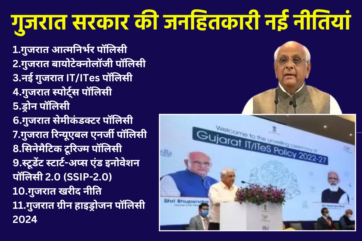 Gujarat CM Bhupendra Patel: गुजरात के मुख्यमंत्री भूपेंद्रभाई पटेल ने गुजरात में शासन के 3 साल आज पूरे कर लिए हैं जहां उनके अनुभवी और कुशल नेतृत्व में पिछले 3 सालों में राज्य की सूरत पूरी तरह से बदल गई है. गुजरात सरकार ने लगातार विभिन्न क्षेत्रों में कई उपलब्धियां हासिल की हैं जहां महिलाओं को सशक्त बनाने और समाज में उनकी स्थिति सुधार से लेकर कई जनहितकारी फैसले और नीतियां जमीन पर उतरी है. पटेल ने 13 सितंबर, 2021 को मुख्यमंत्री की कुर्सी संभाली थी जिसके बाद इन 3 सालों में मुख्यमंत्री ने प्रधानमंत्री नरेंद्र मोदी द्वारा शुरू की गई गुजरात की विकास यात्रा को लगातार आगे बढ़ाने की दिशा में काम किया है. गुजरात में पिछले 3 सालों में विभिन्न क्षेत्रों में अनेक उपलब्धियां हासिल की हैं जहां गुजरात में जी20 बैठकें तथा वाइब्रेंट गुजरात ग्लोबल समिट का 10वां संस्करण सफलतापूर्वक सम्पन्न करवाए गए. वहीं मुख्यमंत्री पटेल के नेतृत्व में आज गुजरात देश का सेमीकंडक्टर हब तथा रिन्यूएबल एनर्जी हब बनने की दिशा में तेजी से आगे बढ़ रहा है. वहीं गुजरात सरकार ने पिछले 3 सालों में 11 महत्वपूर्ण नीतियां लॉन्च की है जो गुजरात की पॉलिसी ड्रिवन स्टेट के रूप में छवि को अधिक मजबूत बनाने का काम कर रही है. गुजरात की जनता की सेवा के 3 सालों में भूपेंद्र पटेल तथा उनकी ‘टीम गुजरात’ ने सभी क्षेत्रों में तेज विकास को गति दी है. मालूम हो कि प्रधानमंत्री ने ‘विकसित भारत@2047’ का जो विजन दिया है उसे ‘विकसित गुजरात से विकसित भारत’ के लक्ष्य के साथ साकार करने के लिए मुख्यमंत्री के नेतृत्व वाली गुजरात सरकार प्रतिबद्धता से काम कर रही है. आइए इस मौके पर एक नजर डालते हैं कि मुख्यमंत्री के 3 सालों के कार्यकाल के दौरान घोषित-कार्यान्वित महत्वपूर्ण योजनाओं, पहलों, नीतियों पर— गुजरात सरकार की जनहितकारी नई नीतियां 1. गुजरात आत्मनिर्भर पॉलिसी 2. गुजरात बायोटेक्नोलॉजी पॉलिसी 3. नई गुजरात IT/ITes पॉलिसी 4. गुजरात स्पोर्ट्स पॉलिसी 5. ड्रोन पॉलिसी 6. गुजरात सेमीकंडक्टर पॉलिसी 7. गुजरात रिन्यूएबल एनर्जी पॉलिसी 8. सिनेमैटिक टूरिज्म पॉलिसी 9. स्टूडेंट स्टार्ट-अप्स एंड इनोवेशन पॉलिसी 2.0 (SSIP-2.0) 10. गुजरात खरीद नीति 11. गुजरात ग्रीन हाइड्रोजन पॉलिसी 2024