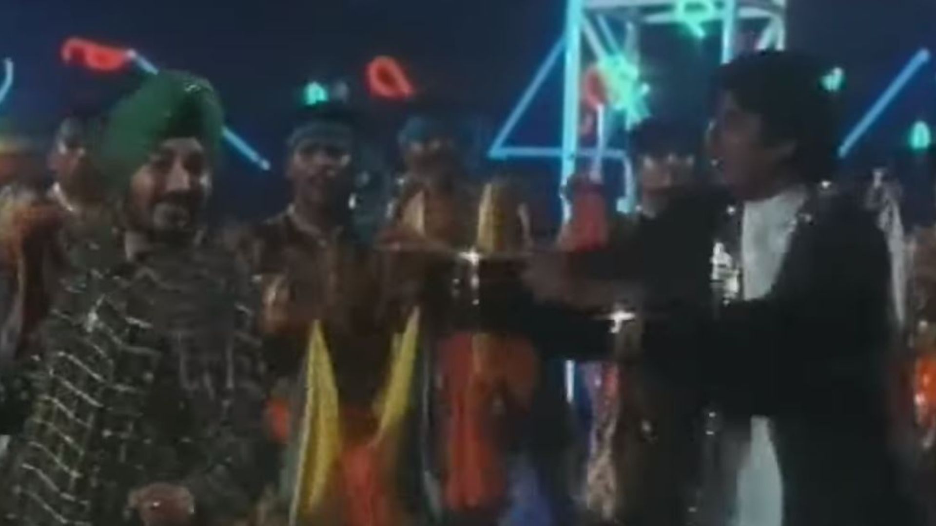 Na Na Na Re - मेहंदी और सुपरस्टार अमिताभ बच्चन ने फिल्म 'मृत्युदाता' के लिए अपने प्रशंसकों की खुशी के लिए लोकप्रिय गीत में ढोल पर नृत्य किया। ना ना ना रे, जिसने दोनों को पहली बार स्क्रीन पर पेश किया, अभी भी अपने आकर्षक हुक स्टेप्स, मेहंदी की लंबी पोशाक, हरी पगड़ी और दो सितारों के कदम-दर-कदम तालमेल के लिए प्रसिद्ध है।