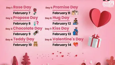 Valentine Week 2024: 14 फरवरी को वैलेंटाइन डे (Valentine Day 2024) से पहले मनाया जाने वाला वैलेंटाइन वीक, आपके महत्वपूर्ण अन्य लोगों, दोस्तों और परिवार के प्रति प्यार और स्नेह व्यक्त करने का समय है। वैलेंटाइन वीक (Valentine Week 2024) का प्रत्येक दिन विशेष महत्व रखता है और प्यार और रिश्तों के विभिन्न पहलुओं का जश्न मनाने का अवसर प्रदान करता है। आइए जानें वैलेंटाइन वीक के सभी सात दिनों के नाम और महत्व: