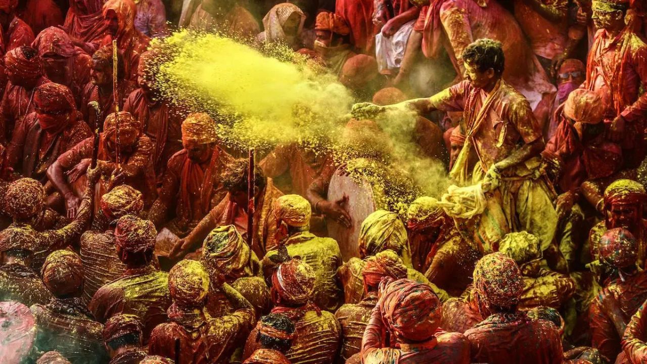 इस अनोखे उत्सव में, राधा की जन्मस्थली बरसाना की महिलाएं, नंदगांव (कृष्ण के गांव) के पुरुषों को लाठियों (Lathmar Holi) से मारती हैं, जबकि वे खुद को ढालों से बचाने की कोशिश करते हैं। यह कार्यक्रम लोक गीतों, नृत्य और जीवंत रंगों के साथ होता है। यह भगवान कृष्ण द्वारा राधा और उसकी सहेलियों को छेड़ने के चंचल प्रसंग को फिर से प्रस्तुत करता है, जो दिव्य प्रेम और आनंद का प्रतीक है।