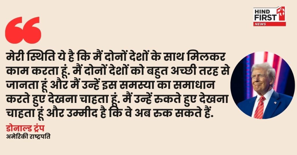 अमेरिकी राष्ट्रपति ने व्हाइट हाउस में पत्रकारों से बातचीत में दावा किया कि "हम दोनों देशों के साथ अच्छे संबंध रखते हैं... मैं चाहता हूं कि यह तनाव खत्म हो।" उन्होंने भारत-पाक के बीच दशकों पुराने विवाद को याद दिलाते हुए कहा कि "वे सदियों से लड़ रहे हैं", लेकिन साथ ही यह उम्मीद भी जताई कि "यह जल्द खत्म होगा।" हालांकि, भारत ने पहले ही स्पष्ट कर दिया है कि वह पाकिस्तान के साथ किसी "बातचीत" में नहीं बैठेगा जब तक आतंकवाद जारी है।