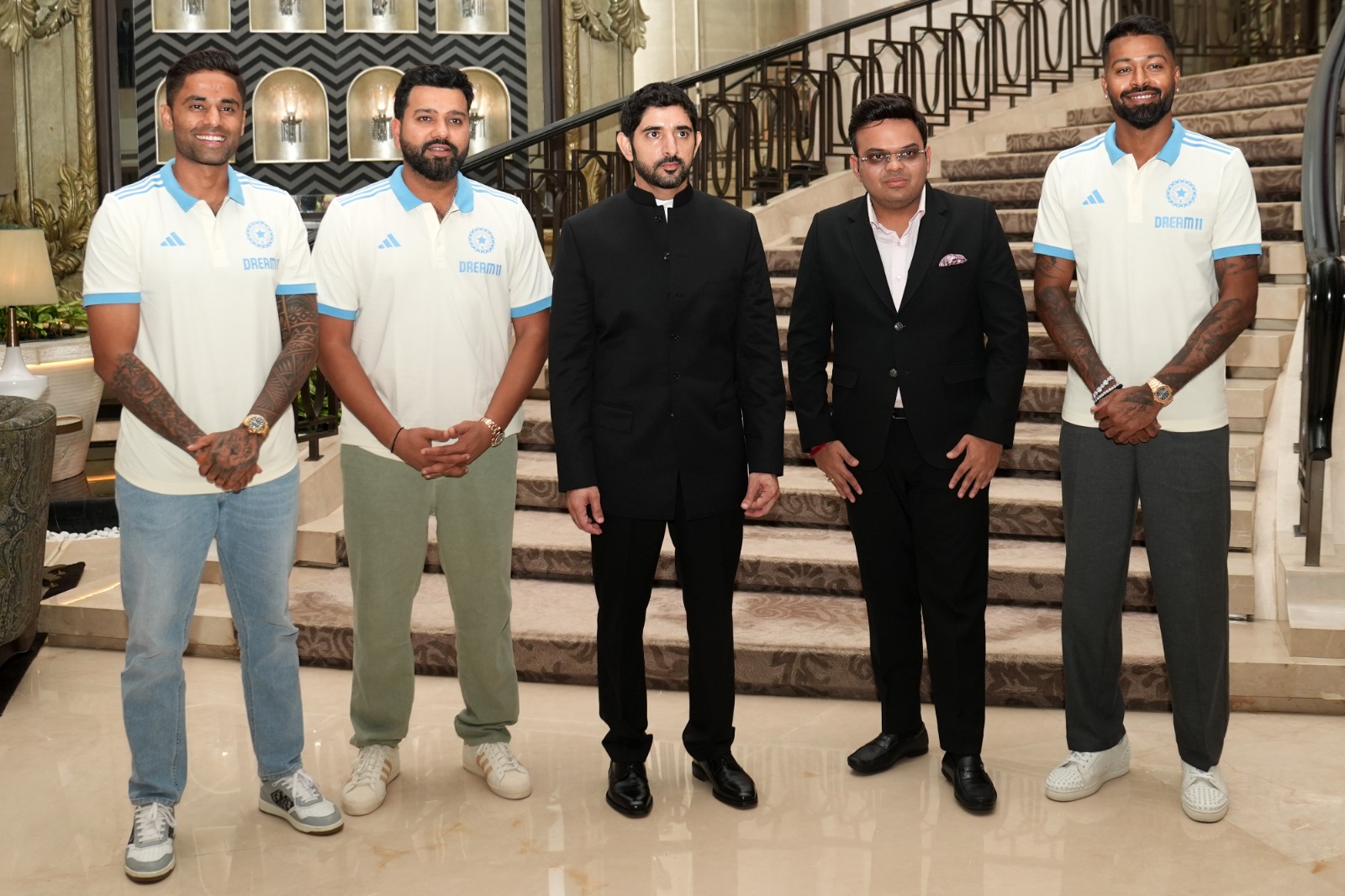 मगर ये ‘फजा’ हैं कौन? चलिए आपको बताते हैं. ये शख्स हैं शेख हमदान बिन मोहम्मद बिन राशिद अल मकतूम, जो दुनियाभर में ‘फजा’ के नाम से मशहूर हैं। शेख हमदान असल में दुबई के क्राउन प्रिंस हैं और संयुक्त अरब अमीरात के उप-प्रधानमंत्री होने के साथ ही रक्षा मंत्री भी हैं। वो इन दिनों भारत के आधिकारिक दौरे पर आए हैं, जहां उन्होंने मंगलवार 8 अप्रैल को प्रधानमंत्री नरेंद्र मोदी से मुलाकात की थी। Jai Shah meet Dubai Crown Prince प्रधानमंत्री मोदी के अलावा शेख हमदान इस दौरे पर मुंबई भी गए और यहीं उनकी मुलाकात हार्दिक पंड्या, रोहित शर्मा और सूर्यकुमार यादव से भी हुई। इस दौरान ये तीनों ही स्टार खिलाड़ी टीम इंडिया की ड्रेस में दिखाई दिए और उन्होंने शेख हमदान को भारतीय टीम की एक नीली जर्सी भी गिफ्ट की। इसकी फोटो उन्होंने अपने इंस्टाग्राम अकाउंट पर पोस्ट की। खास बात ये है कि इस दौरान ICC के चेयरमैन और बीसीसीआई के पूर्व सचिव जय शाह भी मौजूद थे।