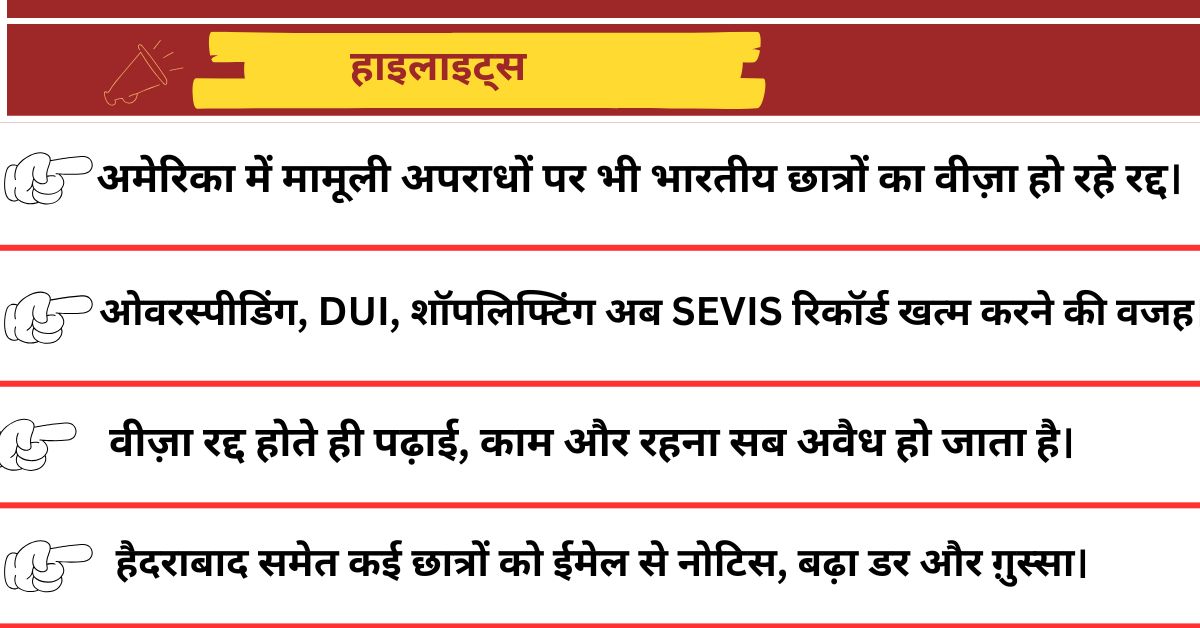 अमेरिका में मामूली अपराधों पर भारतीय छात्रों के वीजा रद्द, देश छोड़ने के आदेश। पहली बार दिखी ऐसी सख्ती, फैला डर का माहौल।