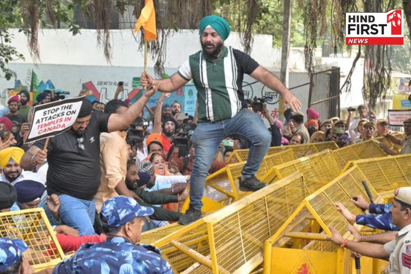 बता दें कि रविवार को हिंदू सिख ग्लोबल फोरम के प्रदर्शनकारी कनाडाई उच्चायोग की ओर मार्च कर रहे थे। मार्च के दौरान कनाडा सरकार के खिलाफ नारेबाजी भी हुई थी। इस दौरान प्रदर्शनकारी पुलिस बैरिकेड्स को गिराने की कोशिश की थी. प्रदर्शनकारियों ने उच्चायोग के बाहर नारा लगाया है। प्रदर्शनकारियों ने कहा कि "हिंदू और सिख एक हैं" और "भारत अपने मंदिरों का अपमान बर्दाश्त नहीं करेगा"।