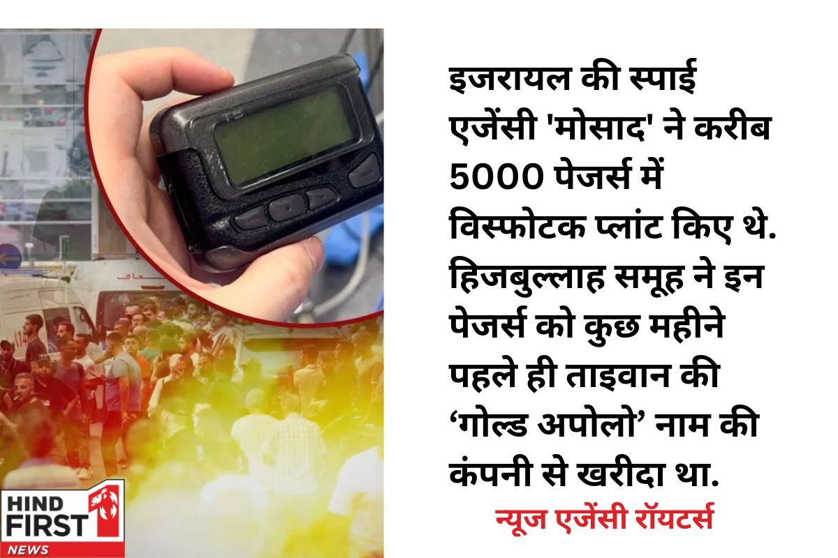 न्यूज एजेंसी रॉयटर्स की रिपोर्ट के अनुसार, इजराइल की स्पाई एजेंसी 'मोसाद' ने लगभग 5000 पेजर्स में विस्फोटक प्लांट किए थे। ये पेजर्स हिजबुल्लाह समूह ने कुछ महीने पहले ताइवान की कंपनी 'गोल्ड अपोलो' से खरीदे थे। यह जानकारी लेबनान के एक वरिष्ठ सुरक्षा अधिकारी और अन्य सूत्रों से मिली है।