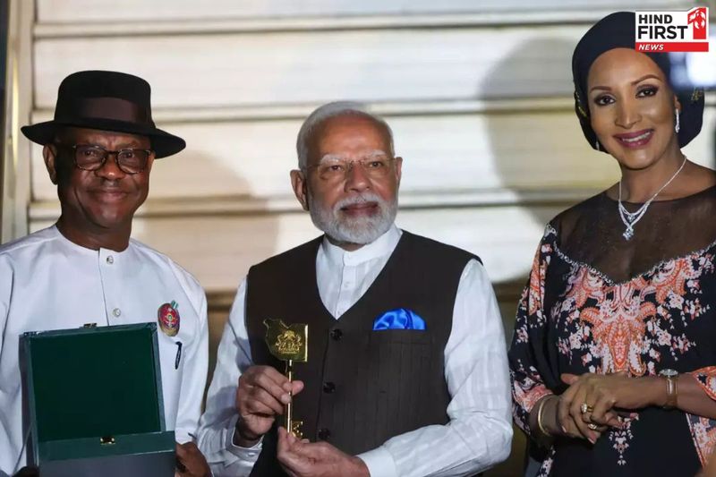 अबुजा हवाई अड्डे पर पीएम मोदी का भव्य स्वागत किया गया। नाइजीरिया के संघीय राजधानी क्षेत्र के मंत्री न्येसोम एज़ेनवो विके ने मोदी को अबुजा शहर की 'चाबी' भेंट की। यह प्रतीकात्मक चाबी नाइजीरिया के लोगों द्वारा प्रधानमंत्री मोदी पर दिखाए गए विश्वास और सम्मान का प्रतीक है।