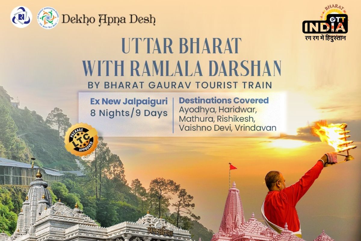 आईआरसीटीसी के इस टूर पैकेज का नाम IRCTC Uttar Bharat with Ramlala Darshan Tour है और यह टूर 8 रात और 9 दिन का रहेगा। जिसमें यात्रियों को हरिद्वार, मथुरा, ऋषिकेश, वैष्णो देवी,वृंदावन और अयोध्या के प्रसिद्ध स्थानों की यात्रा कराई जाएगी। इस टूर पैकेज की शुरूआत 18 मई 2024 से होने जा रही है जो 26 मई को समाप्त होगा। इसमें आपको भारत गौरव टूरिस्ट ट्रेन से यात्रा कराई जाएगी।Escape the worries of daily life on the Uttar Bharat With Ramlala Darshan (EZBG16) tour starting from New Jalpaiguri on 18.05.24.