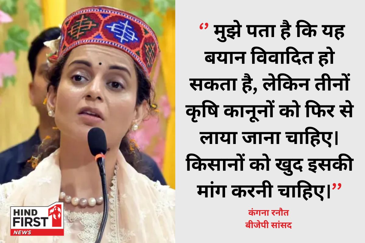 बीजेपी सांसद और एक्ट्रेस कंगना रनौत एक बार फिर अपने बयान के कारण सुर्खियों में आ गई हैं। उन्होंने फिर से किसानों से जुड़ा बयान दिया है। कंगना ने तीन कृषि कानून फिर से लागू करने की मांग की है।