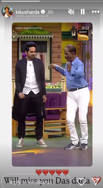 कपिल शर्मा के शो का शुरू से हिस्सा रहे कॉमेडियन और अभिनेता कीकू शारदा ने भी दास दादा के निधन पर दुख जताया। उन्होंने अपने सोशल मीडिया हैंडल से आयुष्मान खुराना संग दास दादा की फोटो शेयर करते हुए लिखा, ''हम आपको मिस करेंगे दास दादा।''