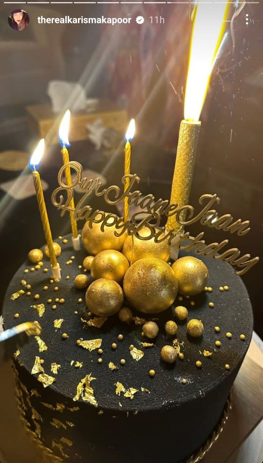 यह भी पढ़ें – क्या Sardar Udham के लिए बेस्ट एक्टर National Award न मिलने से नाराज़ है एक्टर विक्की कौशल? करिश्मा ने Kareena के जन्मदिन के जश्न की एक झलक पेश की अगली फोटो में करिश्मा ने करीना के बर्थडे केक की झलक दिखाई. Black केक को golden balls और candles से सजाया गया था। इस पर ‘Our Jaane Jaan Happy Birthday’ लिखा हुआ था। Kareena की फिल्म जाने जान की रिलीज डेट उनके जन्मदिन के साथ ही आई।