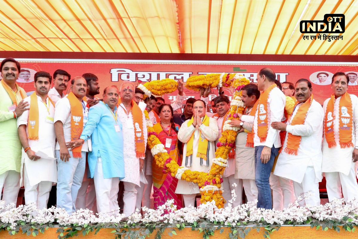 Loksabha Election 2024 Jhalawar Seat: झालावाड़। महारानी वसुंधरा राजे के गढ़ झालावाड़ में उनके पुत्र दुष्यंत की नामांकन सभा में शामिल होने के लिए भाजपा के राष्ट्रीय अध्यक्ष जेपी नड्डा झालावाड़ पहुंचे। इस दौरान नामांकन सभा को संबोधित करते हुए नड्डा ने कहा कि इंडी गठबंधन भ्रष्टाचारियों का गठबंधन है। ये एक ही परिवार की पर्टियों का एलाइंस है। उन्होंने कांग्रेस और अन्य पार्टियों को घोटालेबाज बताते हुए नेशनल हेराल्ड केस, चीनी घोटाला, चावल घोटाला, पनडुब्बी घोटाला सहित कई प्रकार के घोटाले बताते हुए कहा कि इस एलायंस के सभी राजनीतिक दल के नेता घोटालेबाज हैं। उन्होंने कहा कि इंडिएलाइंस के अधिकांश नेता या तो जेल में हैं या फिर बैल पर हैं। इससे पूर्व झालावाड बारां संसदीय क्षेत्र से भाजपा प्रत्याशी दुष्यंत सिंह के समर्थन में जनसभा को संबोधित करने के लिए नड्डा हेलीकॉप्टर से झालावाड़ के श्री जी मेंहमी स्टेडियम पहुंचे। जहां वसुंधरा राजे सिंधिया एवं दुष्यंत सिंह सहित भाजपा के कई नेताओं ने उनका स्वागत किया। उसके बाद नड्डा सभा स्थल पहुंचे और उन्होंने दुष्यंत सिंह के समर्थन में वोट मांगे। उन्होंने भाजपा सरकार की उपलब्धियां को गिनवाया।