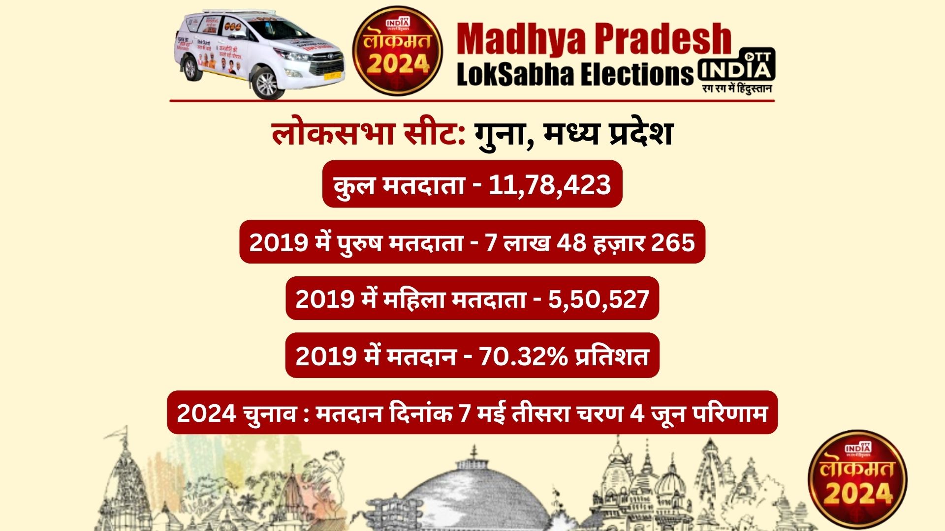 2019 में भाजपा का मध्य प्रदेश की गुना लोकसभा सीट को जीत लेना बड़ी उपलब्धि थी। ये बिलकुल काँग्रेस के ही क्षेत्र में काँग्रेस को हरा देना था। 2019 के आंकड़े देखे जाएँ तो कुल 11 प्रत्याशी इस मैदान में उतरे थे। कुल मतदाता (LOKSABHA ELECTION2024 GUNA SEAT) 16 लाख 5 हज़ार 613 थे। महिला मतदाता 8 लाख 57 हज़ार 327 और पुरुष मतदाता 7 लाख 48 हज़ार 265 थे। जबकि इनमें से कुल 9 लाख 77 हज़ार 619 ही मतदाताओं ने अपने मत से चुनाव को परिणाम तक पहुंचाया। इस सीट पर एक भी महिला उम्मीदवार ने चुनावी पर्चा नहीं भरा था। जबकि नए आंकड़ों के अनुसार गुना की कुल आबादी 24 लाख 93 हज़ार से भी अधिक है।