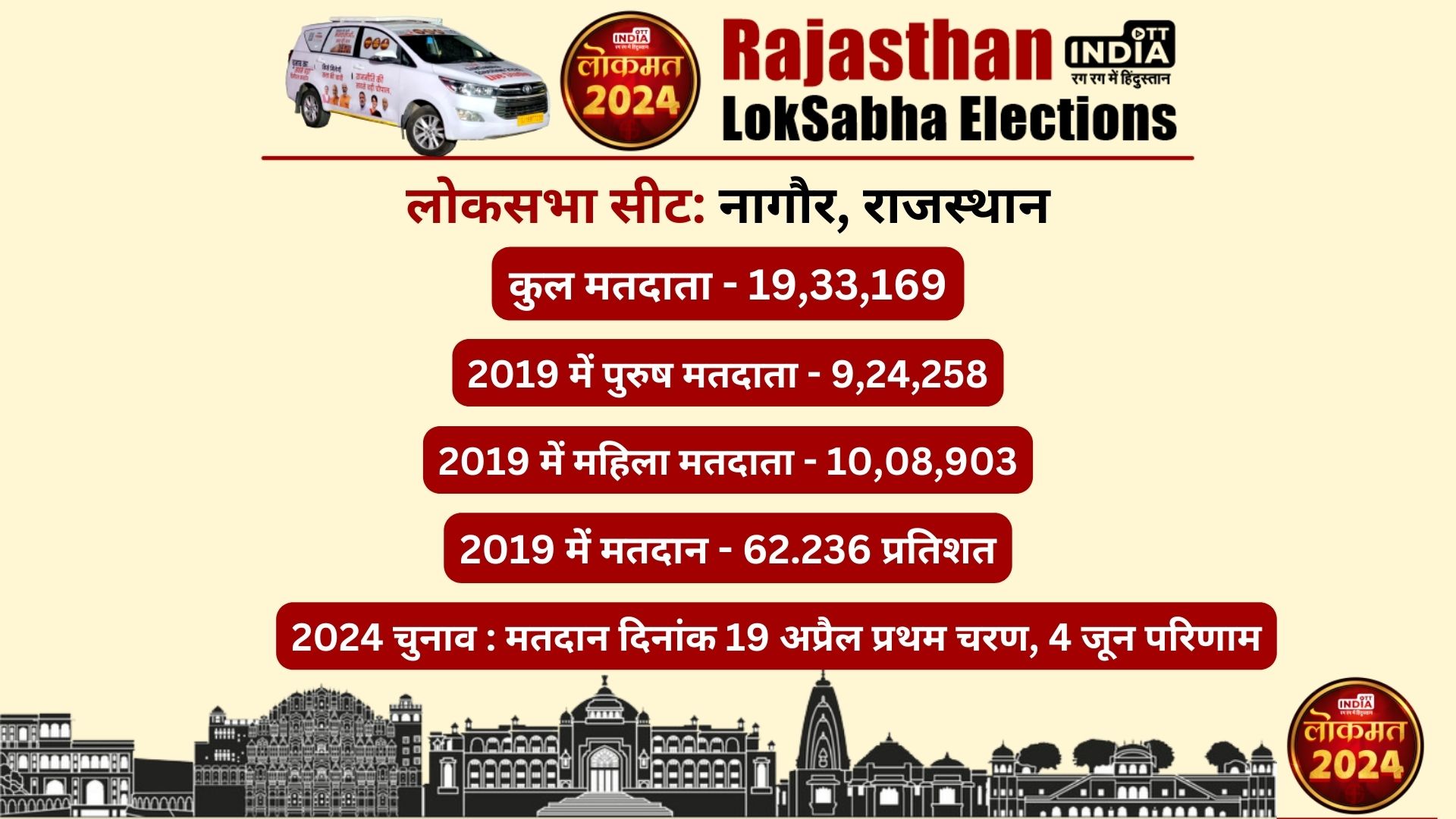 लोकसभा चुनाव की टाइमलाइन देखी जाए तो चुनाव आयोग में नागौर के लिए पहला (LOKSABHA ELECTION2024 NAGAUR SEAT) चरण ही तय किया है। जिसमें मतदान की तारीख 19 अप्रैल की तय की गयी है। जबकि परिणाम एक साथ ही 4 जून को आना ताया है। इसके साथ ही यहाँ के लोग शहर में कम और गावों में ज्यादा निवास करते हैं। ये भी एक वजह रही है कि चुनाव में मतदान का प्रतिशत बहुत ज्यादा नहीं रहता है। लगभग 70 प्रतिशत के आसपास या इससे कम ही रहा है।