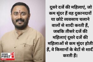 विधायक देवेंद्र भुयार ने जिले की वरुड तहसील में एक सभा को संबोधित करते हुए किसानों की समस्याओं पर बात कर रहे थे। इस दौैरान बोलते हुए उन्होंने कहा कि आपके और मेरे जैसे दिखने वाले लड़कों को सुंदर दिखने वाली लड़कियां पसंद नहीं करती। वे नौकरी वाले लड़कों को पसंद करती हैं। उन्होंने कहा कि दूसरे दर्जे की महिलाएं, जो कम सूंदर हैं वह दुकानदारों या छोटे व्यवसाय चलाने वालों से शादी करती हैं, जबकि तीसरे दर्जे की महिलाएं दूसरे दर्जे की महिलाओं से कम सुंदर होती हैं, वे किसानों के बेटों से शादी करती हैं। भुयार यही नहीं रुके उन्होंने आगे कहा कि ऐसी शादियों से पैदा हुए बच्चे भी सुंदर नहीं होते हैं। उन्हें अक्सर कमजोर गुण विरासत में मिलते हैं। विधायक की टिप्पणी ने आक्रोश पैदा कर दिया और राजनीतिक नेताओं ने इसे महिलाओं और कृषि समुदाय के प्रति अपमानजनक करार दिया।