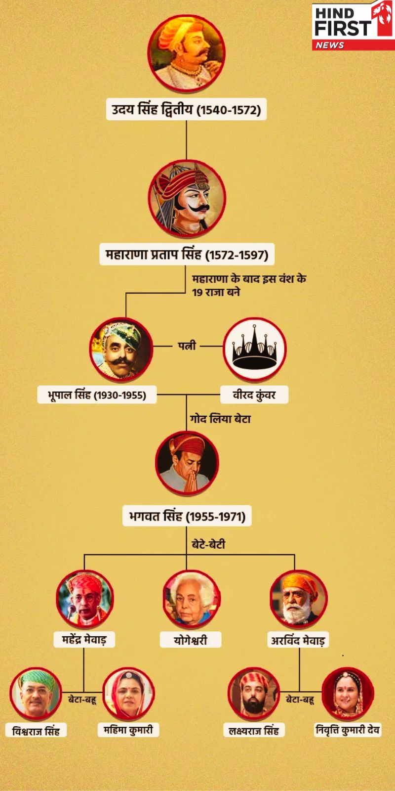 1930 से 1955 तक भूपाल सिंह मेवाड़ के महाराणा रहे। उनकी पत्नी वीरद कुंवर थीं, और उन्होंने एक बेटा गोद लिया था, जिसका नाम भगवत सिंह था। भगवत सिंह 1955 से 1971 तक मेवाड़ के महाराणा रहे। उनके दो बेटे महेंद्र सिंह और अरविंद सिंह थे। महेंद्र सिंह के बेटे विश्वराज सिंह अब 71वें महाराणा के रूप में ताज पहन चुके हैं।