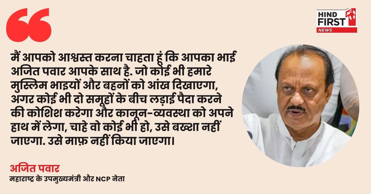 नागपुर हिंसा के बाद डिप्टी CM अजित पवार बोले—मुस्लिम भाइयों को आंख दिखाने वालों को नहीं छोड़ेंगे, कानून तोड़ने वालों पर सख्त कार्रवाई होगी।