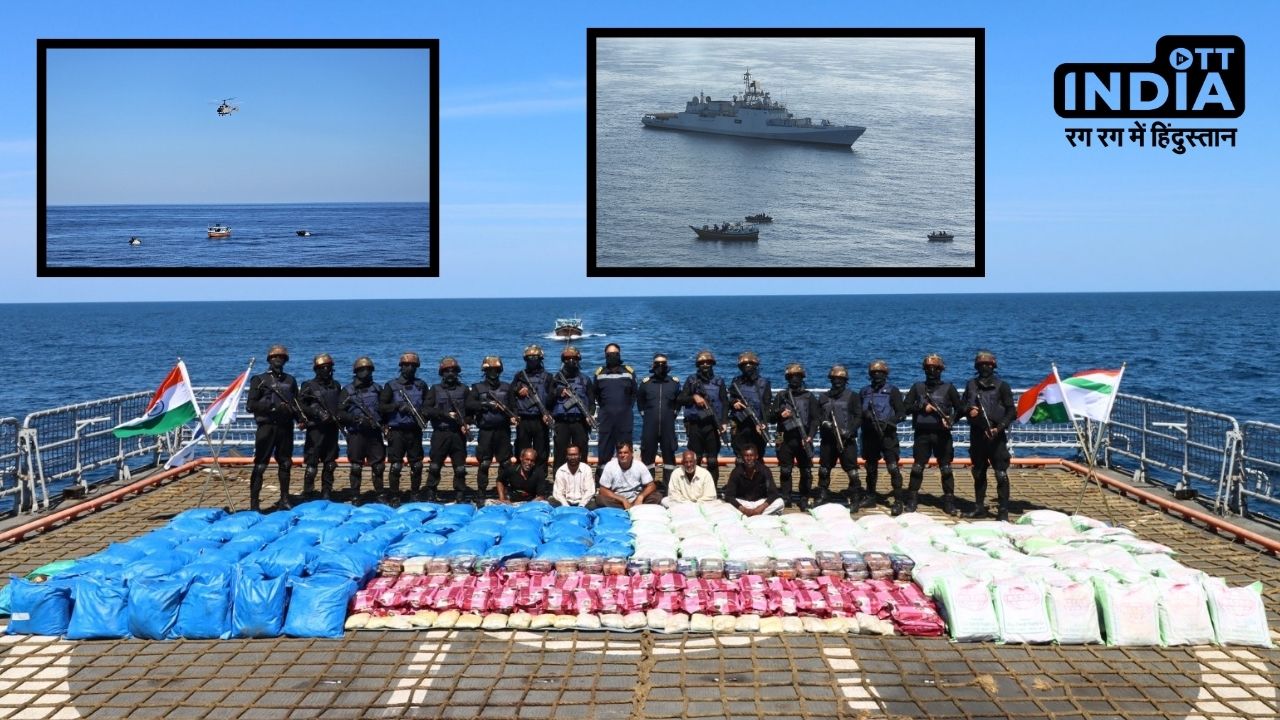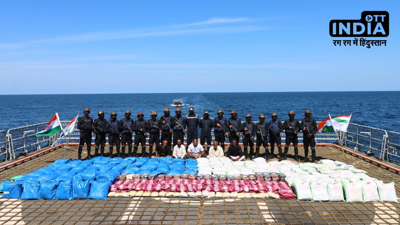 समुद्री ऑपरेशन में भारतीय नौसेना के तटरक्षक बल ने नारकोटिक्स कंट्रोल ब्यूरो (NCB) के साथ मिल करके एक संदिग्ध नाव को पकड़ा लिया है। जिसमें लगभग 3300 किलोग्राम (3089 किलोग्राम चरस, 158 किलोग्राम मेथमफेटामाइन, 25 किलोग्राम मॉर्फिन) बरामद हुई। यह कार्रवाई मिशन-तैनात के सहयोगात्मक प्रयासों के माध्यम से संभव हुई है।