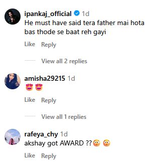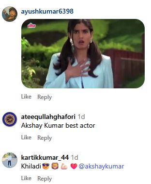 जैसे ही सोशल मीडिया पर अक्षय कुमार और राशा थडानी का यह वीडियो वायरल हुआ, वैसे ही नेटिजंस ने इस पर प्रतिक्रिया देनी शुरू कर दी। एक यूजर ने दोनों की मुलाकात के इस वीडियो पर कमेंट करते हुए लिखा, ''अक्षय शायद कह रहे हैं तुम्हारा पिता मैं होता, बस थोड़ी सी कमी रह गई।''