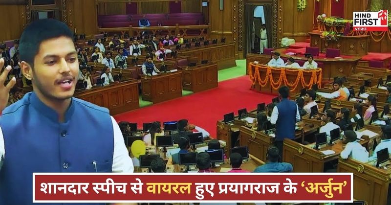 Youth Sansad Prayagraj: उत्तर प्रदेश विधानसभा की ओर से युवा संसद का आयोजन किया गया। इस सभा में कई युवाओं ने भाग लिया। लेकिन, इन सभी में सबसे ज़्यादा चर्चा में प्रयागराज के 12वीं कक्षा के छात्र अर्जुन पांडे रहे। उन्होंने भारत के संविधान के बारे में भाषण दिया और बताया कि यह दूसरे देशों के संविधान से कितना अलग है? उनका भाषण अब सोशल मीडिया पर धमाल मचा रहा है। वायरल वीडियो काफी शेयर किया जा रहा है।