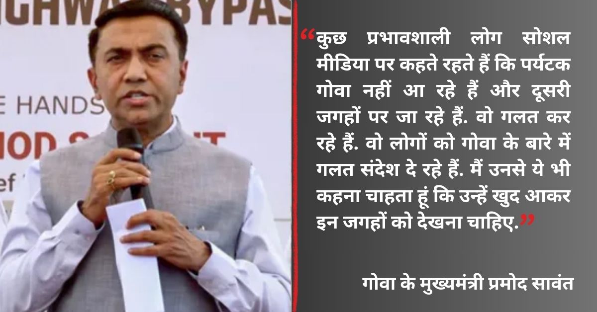 प्रमोद सावंत ने एएनआई से बातचीत में इस बात पर जोर दिया कि गोवा के सभी प्रमुख पर्यटन स्थल, जैसे कि होटल और बीच, पर्यटकों से भरे हुए हैं। मुख्यमंत्री ने ये भी कहा कि कुछ सोशल मीडिया इन्फ्लुएंसर्स गलत जानकारी फैला रहे हैं और लोगों को भ्रमित कर रहे हैं। उन्होंने इस बारे में इन्फ्लुएंसर्स से भी आग्रह किया कि वे गोवा आकर खुद देख लें कि यहां पर कितनी भीड़ है और राज्य के पर्यटन उद्योग में कितनी सक्रियता है।