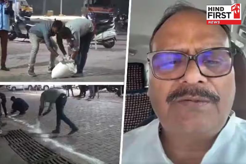 दूसरी तरफ, डिप्टी CM के स्वागत के लिए सड़क पर चूने का छिड़काव हो रहा था।