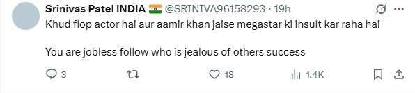 केआरके किसी भी फिल्म पर अपनी राय देने से पीछे नहीं हटते हैं। हालांकि, इसके लिए वह अक्सर ट्रोल्स के निशाने पर आ जाते हैं। ऐसा ही एक बार फिर हुआ है। जब उन्होंने आमिर खान की 'सितारे जमीन पर' के ट्रेलर को खराब और सड़ा हुआ बताया, तो वह नेटिजंस के निशाने पर आ गए। केआरके की पोस्ट पर गुस्सा जाहिर करते हुए एक नेटिजन ने लिखा, ''ये फिल्म फिर भी तुम्हारे करियर से बेहतर है।'' वहीं, दूसरे ने लिखा, ''खुद फ्लॉप एक्टर है और आमिर खान जैसे मेगास्टार का अपमान कर रहा है। तुम बेरोजगार हो और दूसरों की सफलता से जलते हो।''