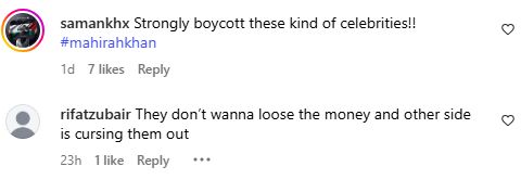 माहिरा खान ने इंडिया में पाकिस्तानी कलाकारों के बैन होने पर जो बयान दिया है, उसे लेकर वह काफी ट्रोल भी हो रही हैं। दरअसल, उनके फैंस का मानना है कि वह अब भी बॉलीवुड में काम करने की इच्छुक हैं। फैंस ने ऐसा अनुमान लगाया कि माहिरा ने घुमा-फिराकर जवाब दिया है। एक यूजर ने लिखा, ''मत आया करो इंडिया, पाकिस्तानी कलाकारों की कोई इज्जत नहीं होती।'' वहीं, एक अन्य ने पाकिस्तानी फैन ने लिखा, ''हमारे सेलेब्स में कोई सेल्फ रिस्पेक्ट नहीं है।''