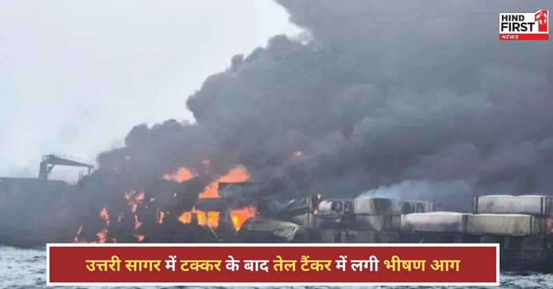 उत्तरी सागर में बड़ा हादसा, टक्कर के बाद तेल टैंकर और कार्गो शिप में लगी भीषण आग