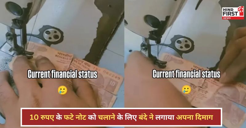 10 रुपये के फटे नोट को चलाने की जुगाड़, शख्स ने सिलाई मशीन से जोड़ा: वीडियो वायरल