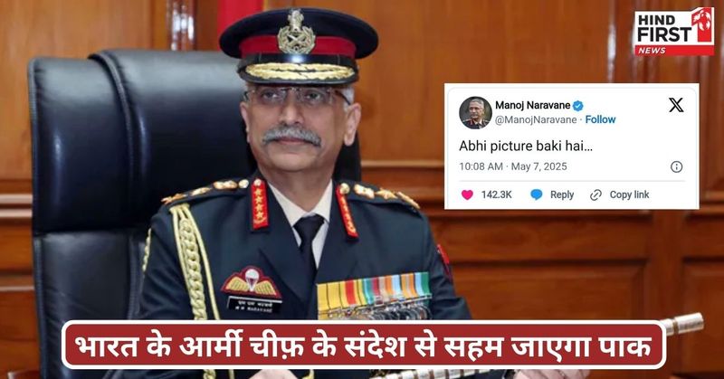 भारतीय सेना ने पहलगाम आतंकी हमले का जवाब "ऑपरेशन सिंदूर" के तहत पाकिस्तान के 9 आतंकी ठिकानों को ध्वस्त कर दिया है, जिसके बाद से लगातार भारत पाक के बीच आंकड़ों के जरिए हमले की कैजुअल्टी को लेकर आरोप प्रत्यारोप जारी हैं। हमला इतना भीषण है कि पाकिस्तान अभी तक खुद को संभाल नहीं पा रहा है। लेकिन इस बीच भारत के पूर्व आर्मी चीफ जनरल मनोज मुकुंद नरवणे के एक ट्वीट ने अब और ज्यादा खलबली मचा दी है। X पर ट्वीट करके उन्होंने लिखा कि "अभी पिक्चर बाकी है..." यह संक्षिप्त लेकिन रहस्यमय संदेश क्या भारत की और बड़ी सैन्य कार्रवाई का इशारा है?