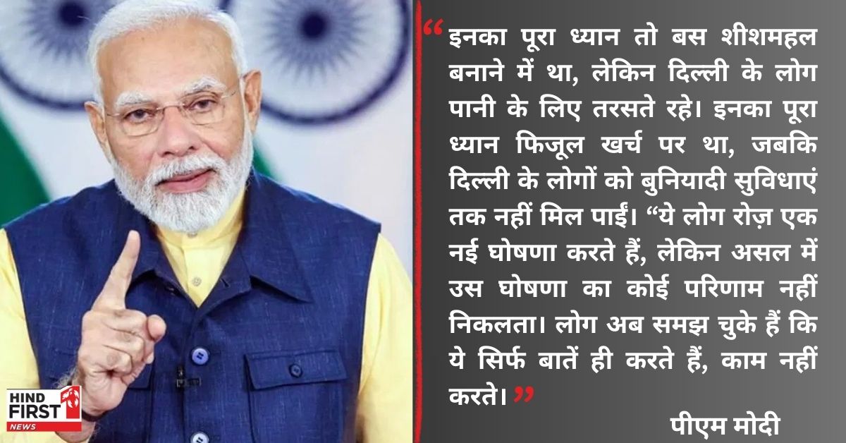 प्रधानमंत्री मोदी ने दिल्ली में पानी की कमी को लेकर भी ‘आप’ सरकार पर तंज कसा। उन्होंने कहा, “इनका ध्यान तो बस शीशमहल बनाने में था, लेकिन दिल्ली के लोग पानी के लिए तरसते रहे। इनका पूरा ध्यान फिजूल खर्च पर था, जबकि दिल्ली के लोगों को बुनियादी सुविधाएं तक नहीं मिल पाईं।” मोदी ने साफ कहा कि ‘आप’ सरकार ने सिर्फ घोषणाओं के पहाड़ बनाए, लेकिन धरातल पर उनका कोई असर नहीं दिखा।
